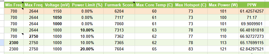 - Undervolt: 1000mV (very lucky…), I think ~1080mV is the average